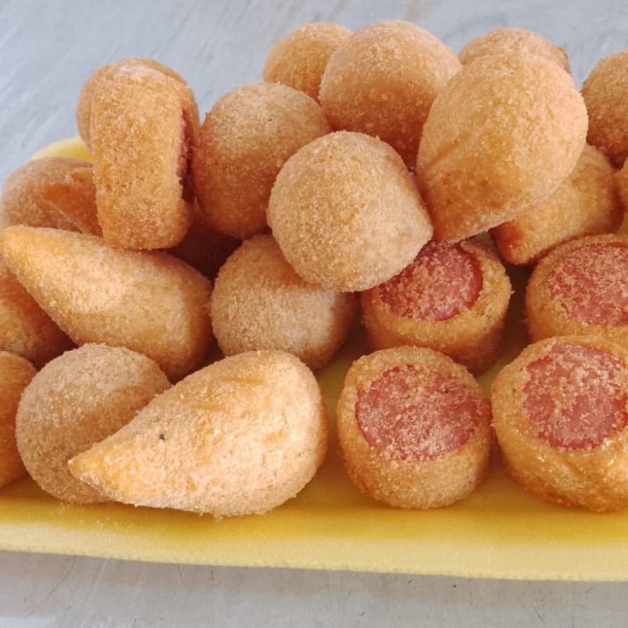 Misturados Coxinha, salsicha, travesseiro presunto e muçarela, bolinha de milho