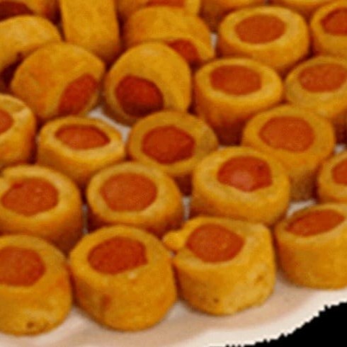 Bandeja com 20 unidades de mini enrolado de salsicha,já fritos