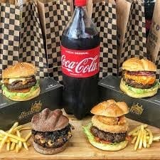 Pão ,2 bifes de picanha 120gr, cheddar , 2 mussarelas, molho barbecue , alface , tomate