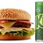 Pão 2 bifes especiais, dobro de queijo, cheddar, onions rings, bacon, molho barbecue, alface + Suco de Laranja 1l