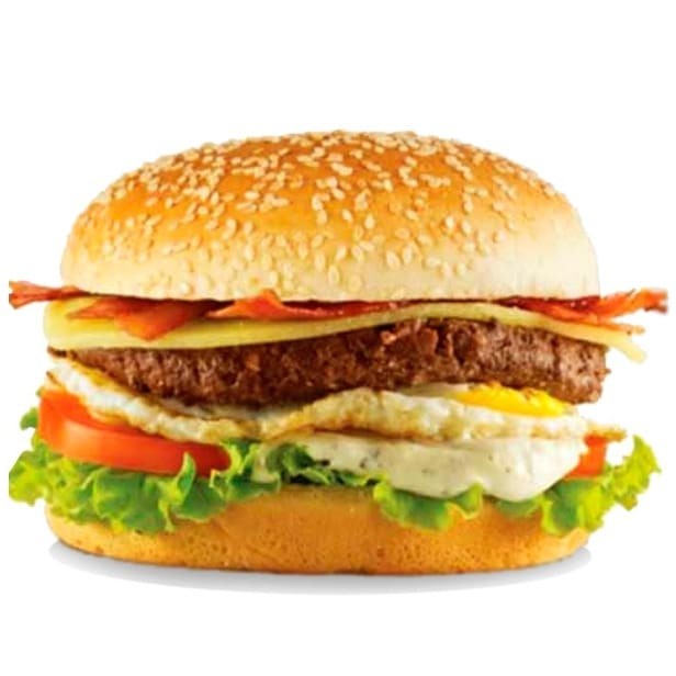 Pão,hambúrguer,molho especial, presunto,muçarela,bacon,ovo,cheddar,batata palha,,alface,