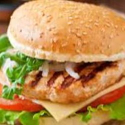 Hambúrguer de frango suculento com presunto, mussarela, alface, tomate e maionese especial, tudo no sandubão com batata palha.