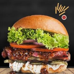 Pão, hambúrguer de boi,queijo,batata,salada e molho especial