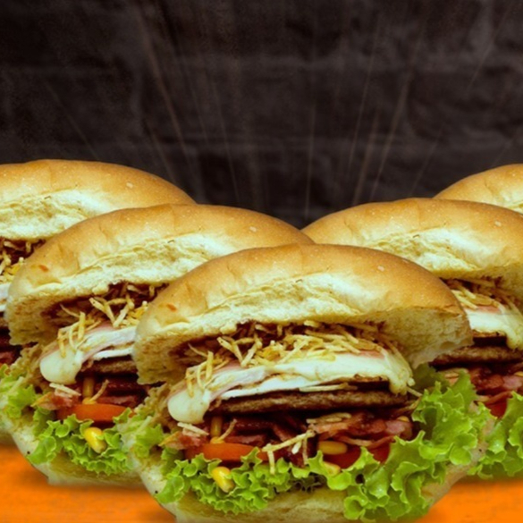 Pão,2 hambúrguer de boi,ovo,bacon,frango desfiado, Catupiry,queijo,presunto,milho batata palha,salada e molho especial