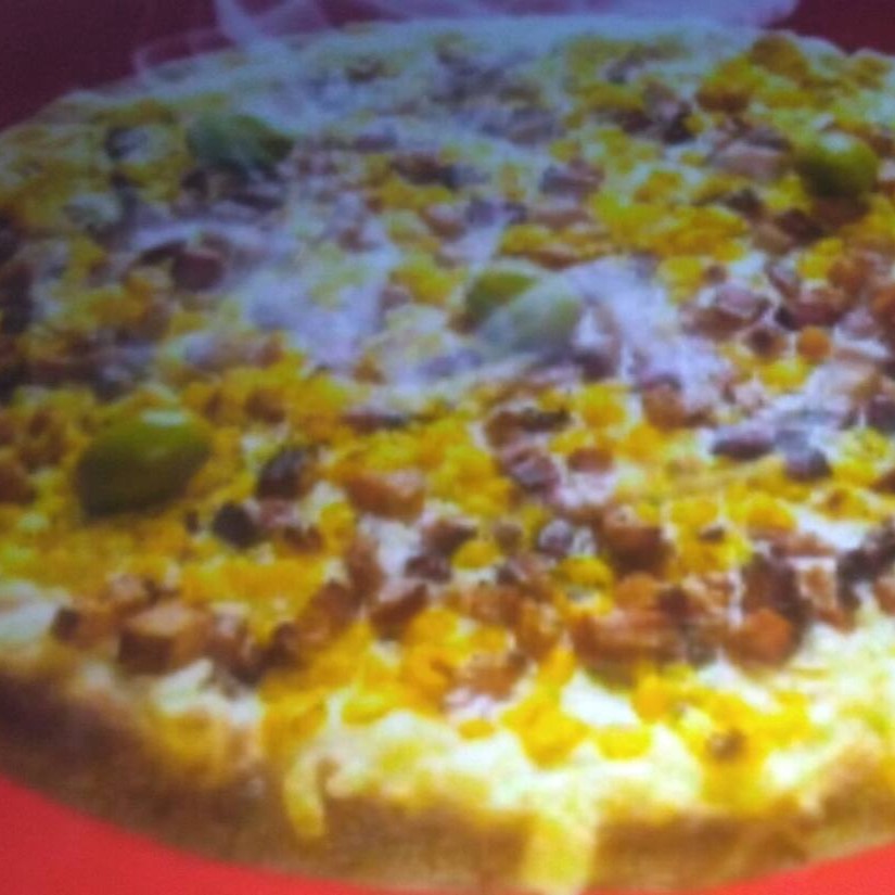 Massa, Molho De Tomate, Bacon, Milho, Cebola, Tomate, Pimentão, Mussarela E Oregano.