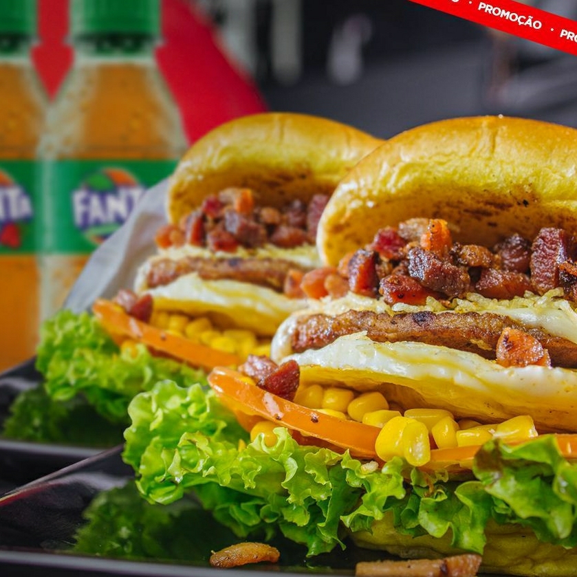 Clássico que não pode faltar!Pão, hambúrguer bovino, ovo, bacon crocante, queijo prato, alface, tomate, milho, batata palha extra fina e molho especial da casa + molho de alho.