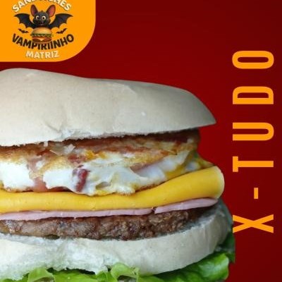 Pão, hambúrguer de picanha 120g, ovo, bacon, queijo, presunto, alface, tomate, batata, milho e molho especial.