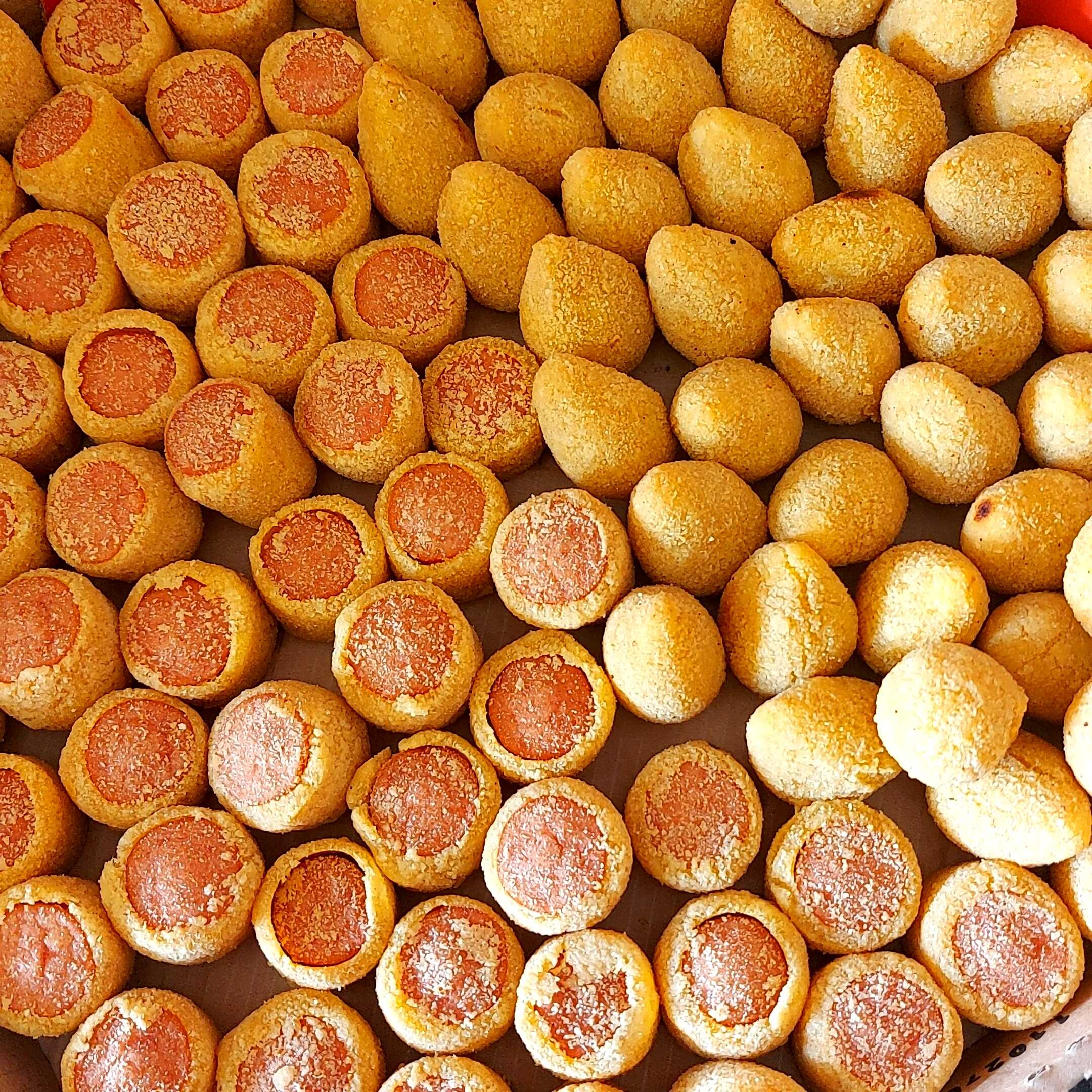 25 coxinhas mais 25 bolinhas napolitanas fritas e pronta pro consumo
