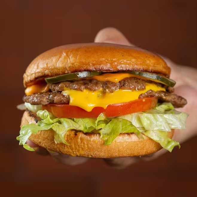 Pão Selado, 2x Smashs de 80g, Duplo Queijo, Alface e Tomate.