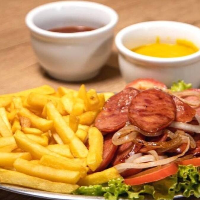 500g de batata frita com 400g de linguiça calabresa.