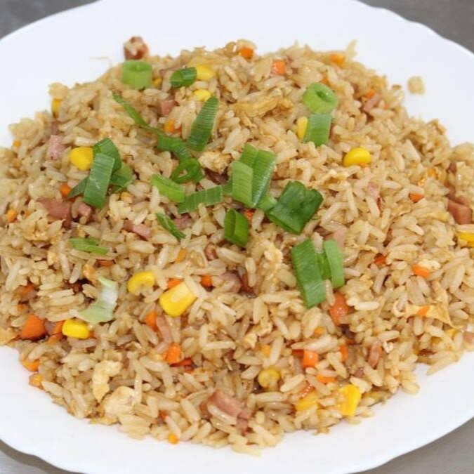 Arroz temperado com milho, cenoura, cebolinha, carne de boi. (Não retiramos ingredientes).