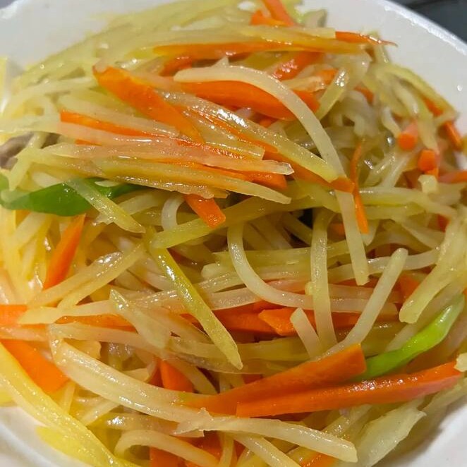 Delirosas batatas em fatias acompanha de cenoura