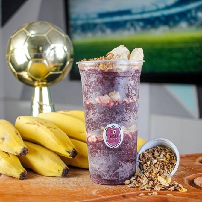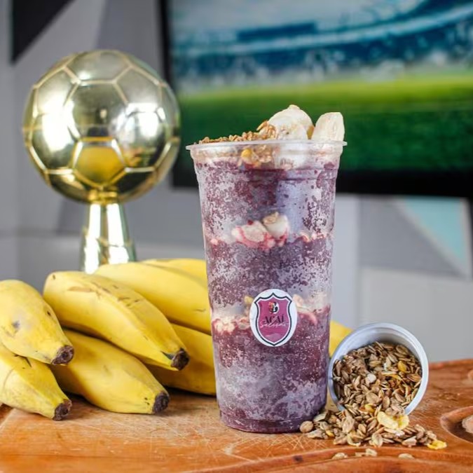 Creme de açaí, granola crocante, banana selecionadas.