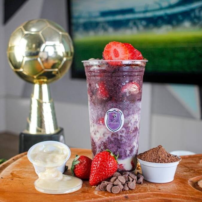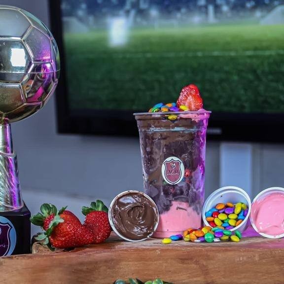 Creme De Açaí, Camadas De Leite Condensado, Ovomltine, Gotas De Chocolate E Morango.