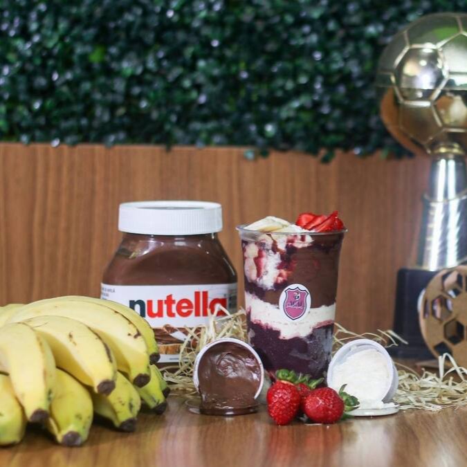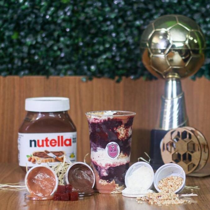 Creme De Açaí, Camadas De Leite Em Pó, Banana, Morango E Nutella Obs: Não Enviamos Os Acréscimos Dos Copos Montados Separado