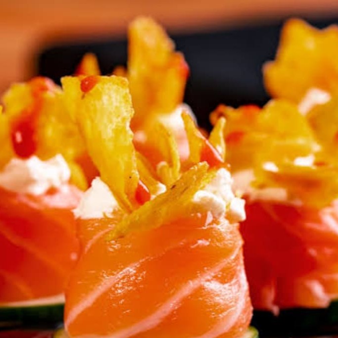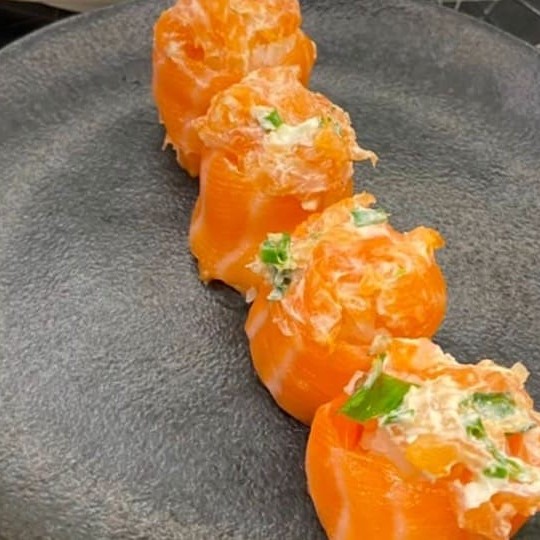 8jhoe Filadélfia com tartar de salmão creme shese e cebolinha