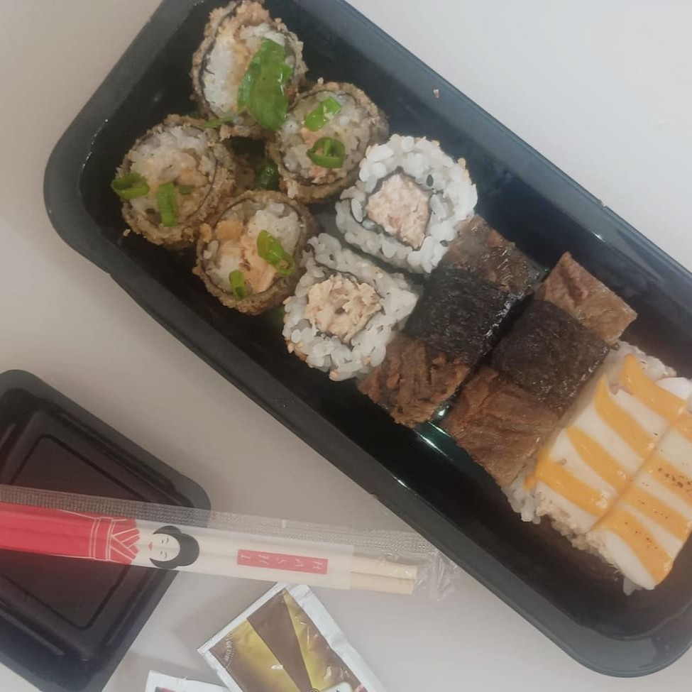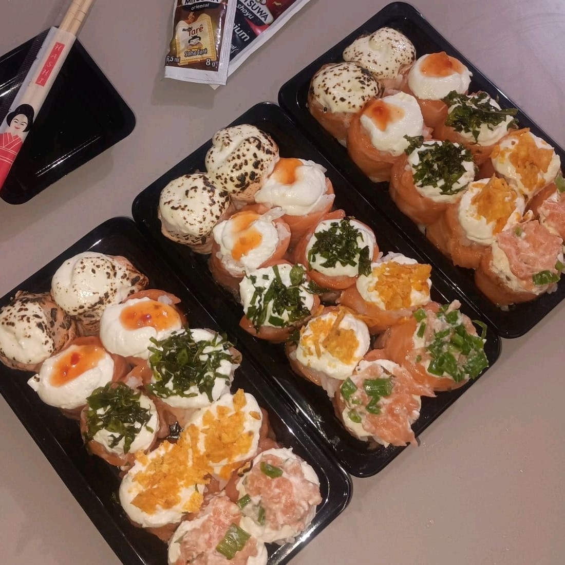 2 sushi salmão ,2 sushi pele, 2 joe Filadélfia 2 ura grelhado ,4 hot (Não acompanha molhos)