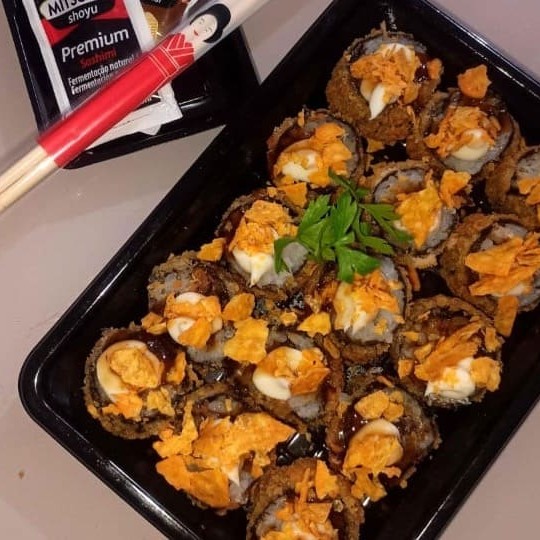 5 hot Filadélfia com creme shese e Doritos crocante. 5 hot Filadélfia com creme shese e couve. 5 hot Filadélfia com creme shese e pimenta biquinho