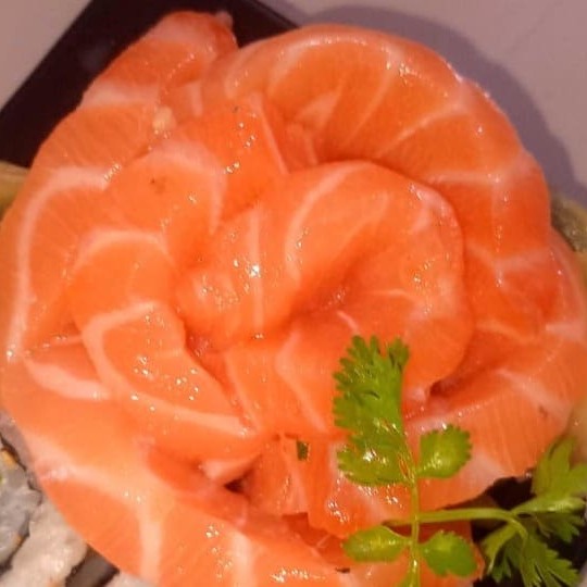 6 lâminas de sashimis maçaricado ( feito com salmão fresco )