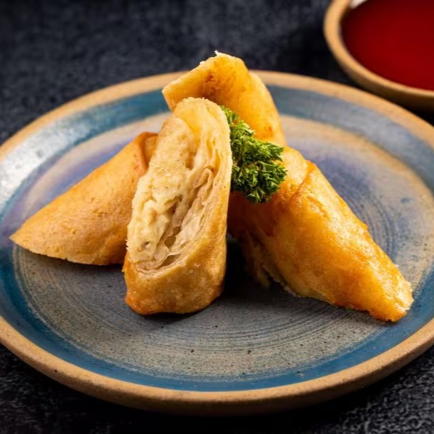 Rolinhos Primavera Recheados com Frango e Catupiry, Envoltos em Massa Fina e Crocante.