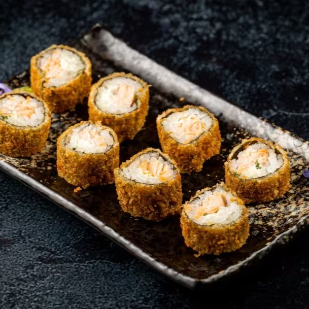 Sushi Empanado Recheado com Cream Cheese e Salmão.