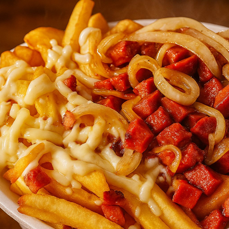 Frango , batata frita , mussarela , bacon e linguiça calabresa.