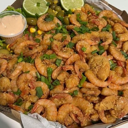 Camarão Empanado extra, Salada e Molho Rosé da Casa