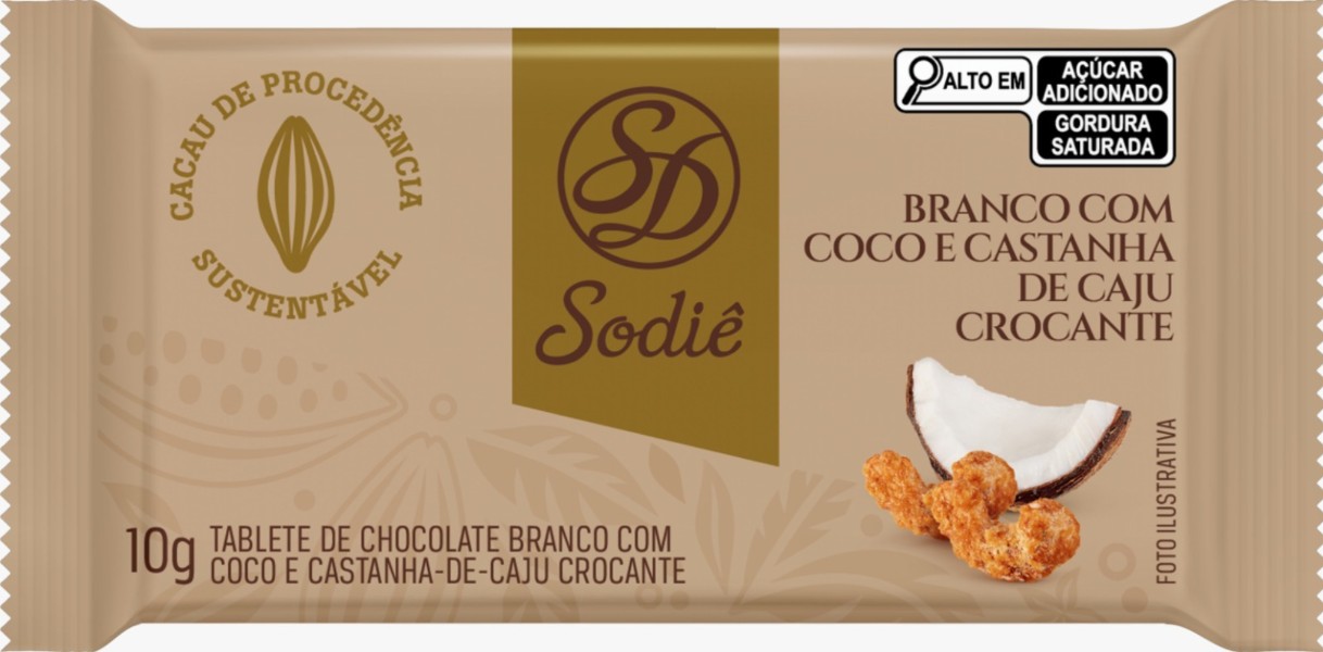 Mini Tablete Branca Com Coco E Castanha De Caju Crocante 10g