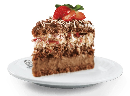 Bolo de massa de chocolate, recheios de mousse de chocolate e mousse branca com morangos, cobertura de trufado de chocolate ao leite e branco e morangos