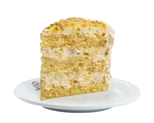 Bolo de massa branca, recheio e cobertura de mousse de maracujá e geleia de maracujá.