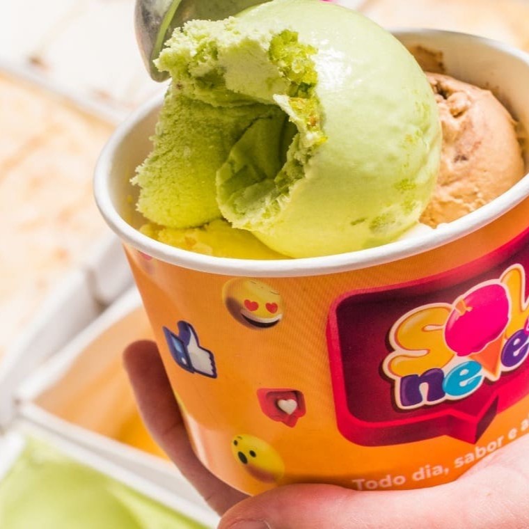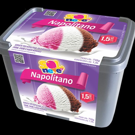 Sorvete napolitano sabor chocolate, creme e morango