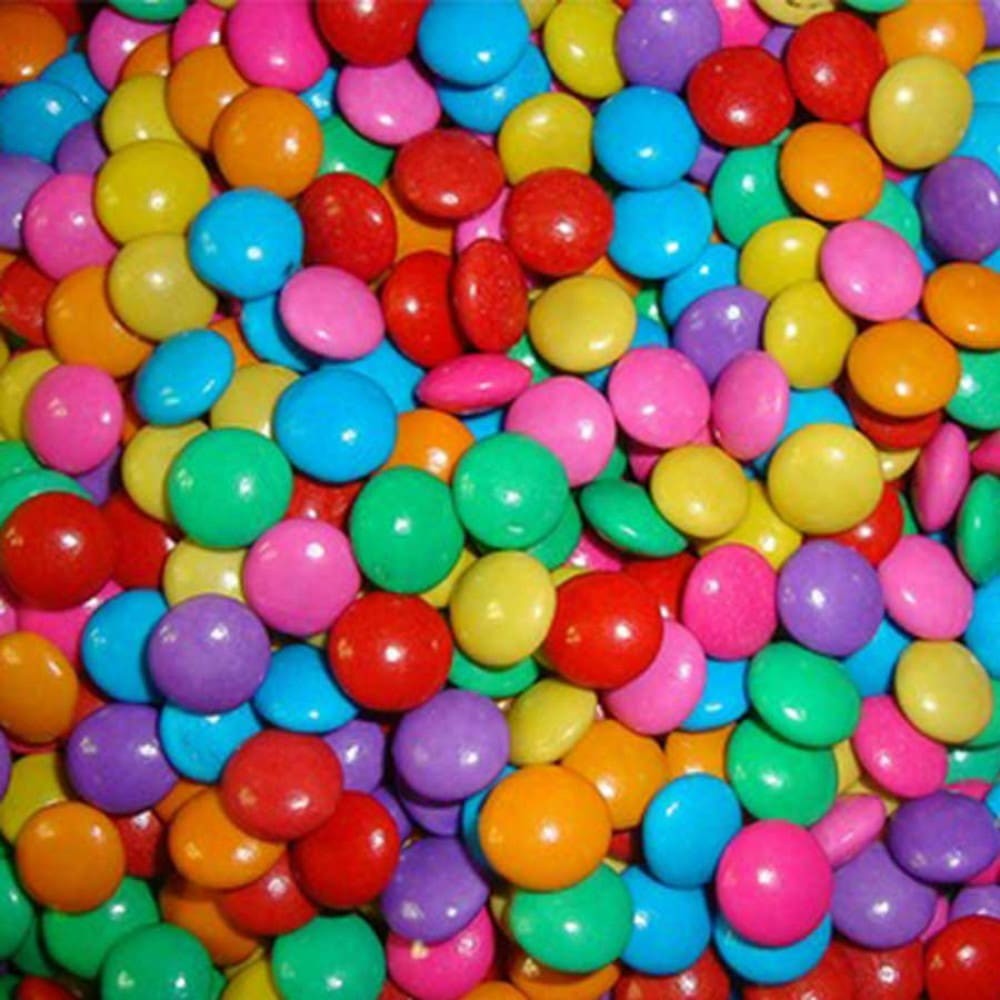 Pastilhas confeitadas e coloridas sabor chocolate, crocantes por fora e macias por dentro
