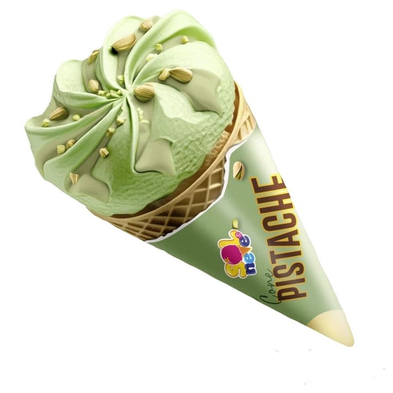 Sorvete de pistache com pistaches granulados. Ingredientes: Leite em pó reconstituído, açúcar, gordura de palma, glicose de milho, pistaches, castanhas-de-caju, extrato de malte, sal, emulsificante mono e diglicerídeos de ácidos graxos, espessantes goma guar, goma jataí e carragena, corantes artificiais caramelo Iv, amarelo tartrazina e azul indigotina e aromatizante. Contém Glúten. Contém Lactose. Alérgicos: Contém Pistache, Castanhas-De-Caju E Derivados De Leite, Cevada E Soja. Pode Conter Trigo, Amendoim E Avelãs.