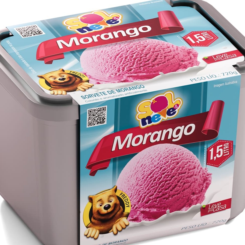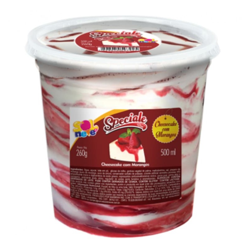 Sorvete sabor morango mesclado com preparado de morangos triturados Ingredientes: Leite em pó reconstituído, açúcar, gordura vegetal de palma, glicose de milho, preparo de morango (açúcar, morango e conservador sorbato de potássio), espessantes goma guar, goma jataí, carboximetilcelulose sódica, goma xantana e carragena, emulsificantes mono e diglicerídeos de ácidos graxos e lecitina, acidulante ácido cítrico, corantes artificiais amaranto, amarelo crepúsculo, amarelo tartrazina e vermelho Bordeaux e aromatizante artificial. Alérgicos: Contém Derivados De Leite E De Soja. Pode Conter Cevada, Trigo, Amendoim E Avelãs. Contém Lactose. Este produto não contém glúten nos ingredientes, porém é produzido em local onde são processados alimentos com glúten.