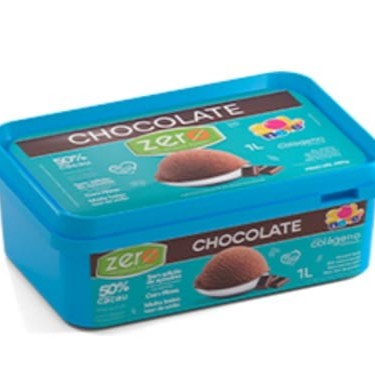 Sorvete de chocolate sem adição de açucares, 50% Cacau, com colágeno hidrolisado. Rico em fibras, baixo teor de sódio e baixo teor de gordura