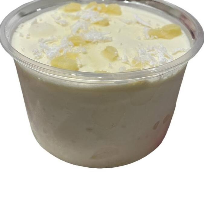 Pote de 1 litro de sorvete gourmet sabor abacaxi com coco enriquecido com pedaços de abacaxi em calda e coco flocado