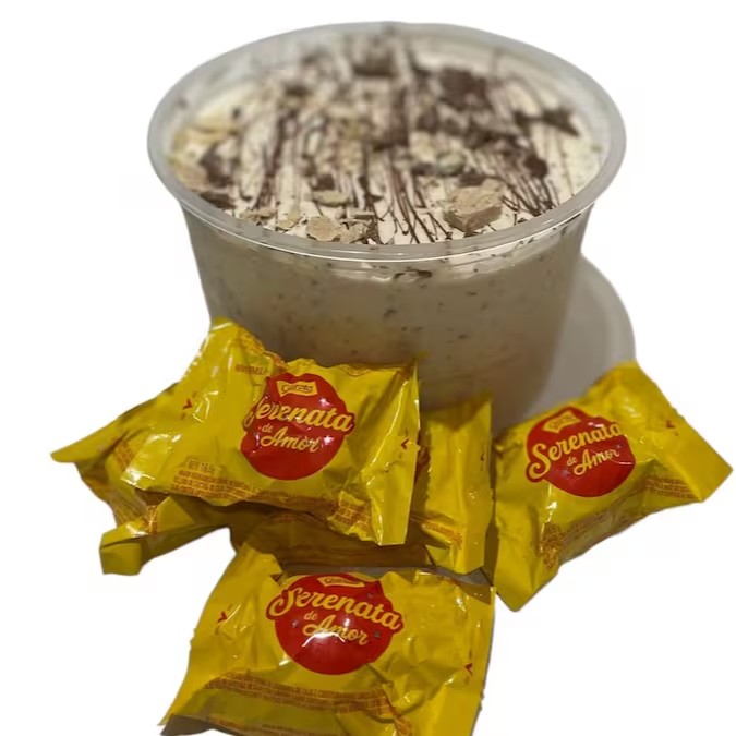 Pote De Um Litro De Sorvete Cremoso Gourmet Sabor Sonho de Valsa Com Pedaços De Bombom.