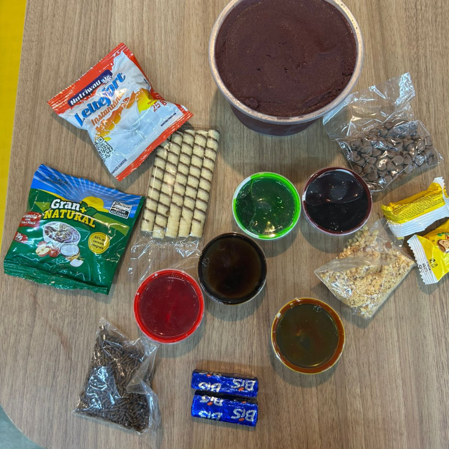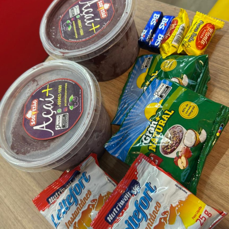 São 2 Potes De 500 Ml De Açaí, 2 Leite Em Pó, 2 Granolas, 2 Bis, 2 Paçocas