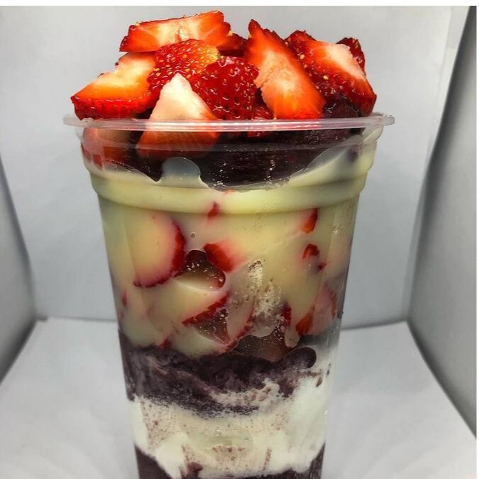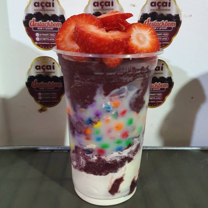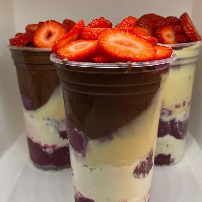 Açaí, Leite em Pó, Mousse de Morango, Leite Condensado, Chantilly