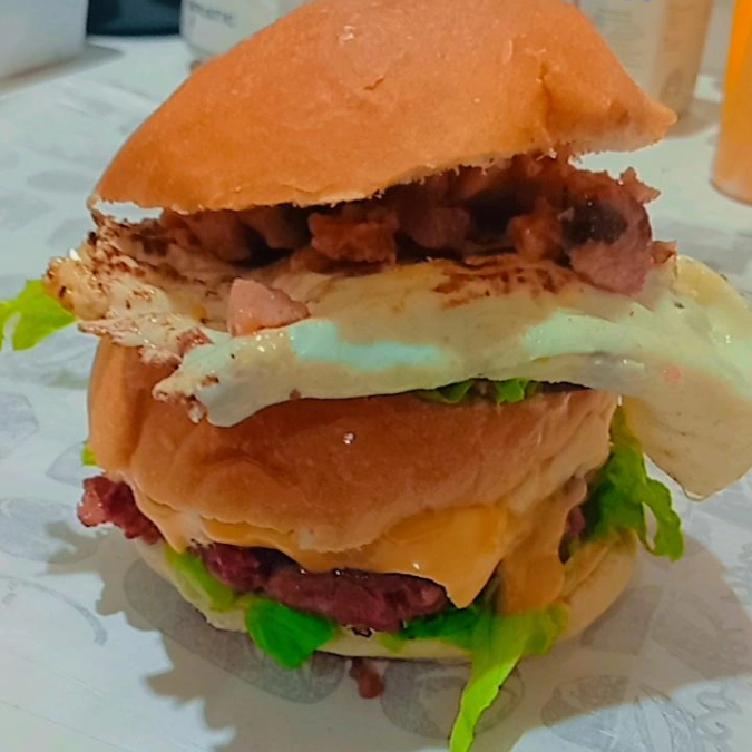 Pão , molho especial , alface , carne artesanal suculenta, queijo cheddar , tomate ,cebola caramelizada ,ovo