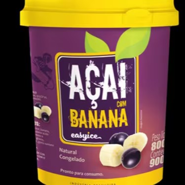 Creme de açaí congelado, pronto para consumo, mesclado com banana.