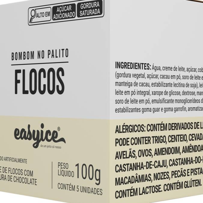 Bombom de sorvete Easyice sabor flocos coberto com chocolate.