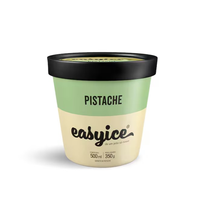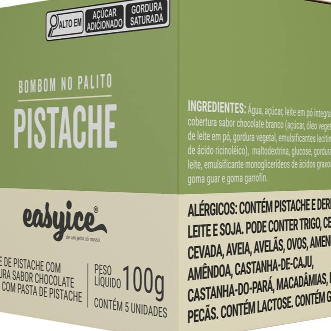 Bombom de sorvete Easyice sabor pistache coberto com chocolate saborizado de pistache.