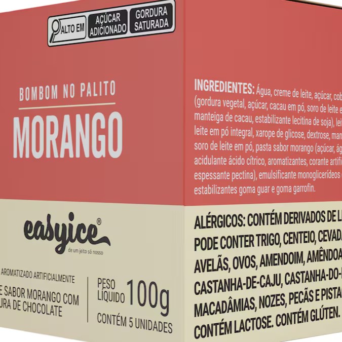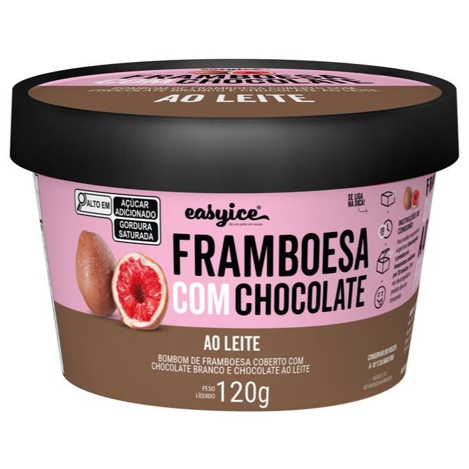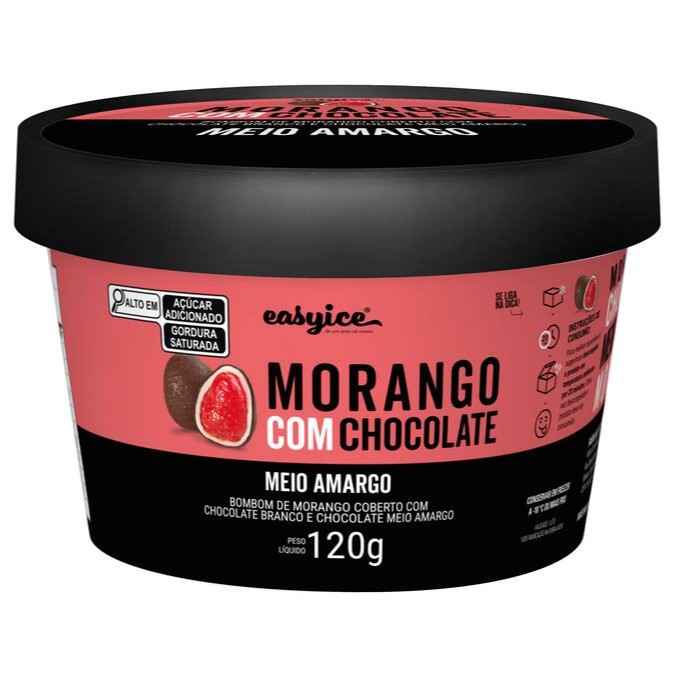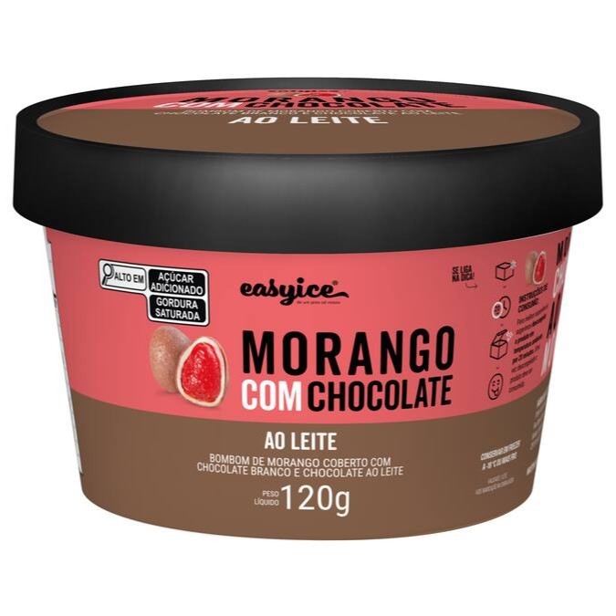 Bombom de sorvete Easyice sabor doce morango coberto com chocolate.