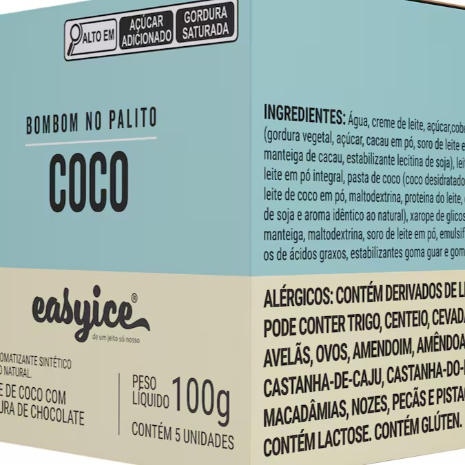 Sorvete de coco Easyice em versão picolé com cobertura de chocolate.