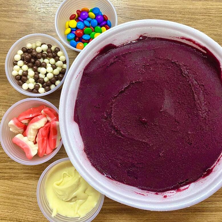 Escolha 1 sabor de açaí e até 05 guloseimas.