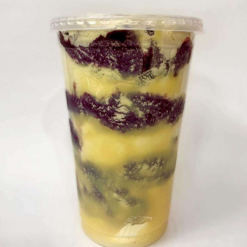 Açai, leite, leite condesado e leite em pó em camadas