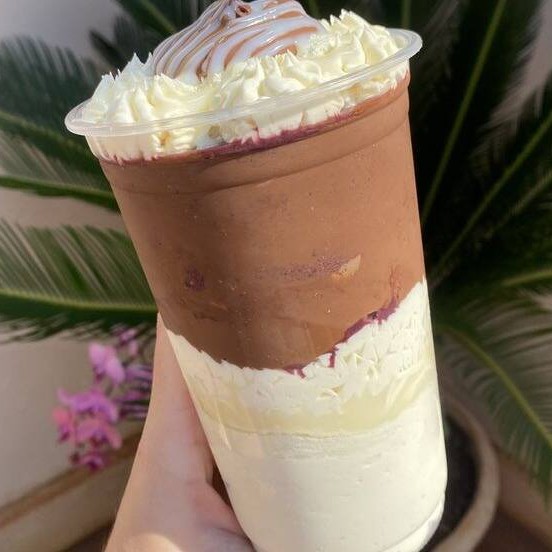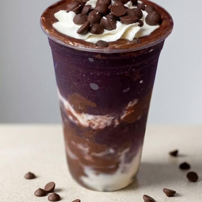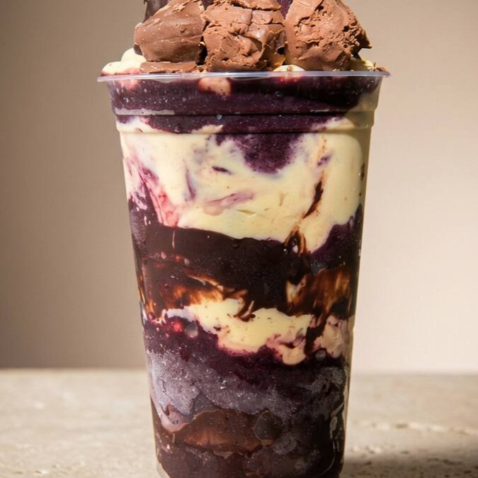 Cremoso e irresistível, feito com açaí, leite em pó e Nutella, finalizado com gotas de chocolate e creme de chococookies.
