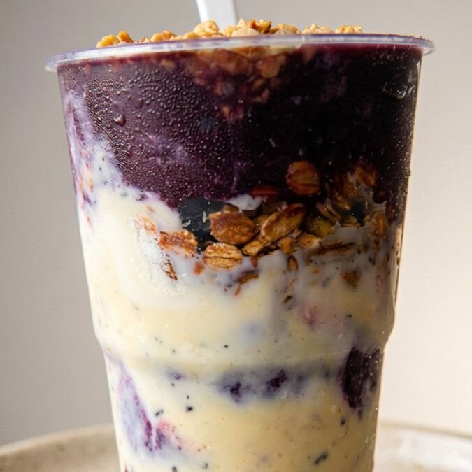 Cremoso e irresistível, feito com açaí, Ovomaltine e Nutella, finalizado com gotas de chocolate.