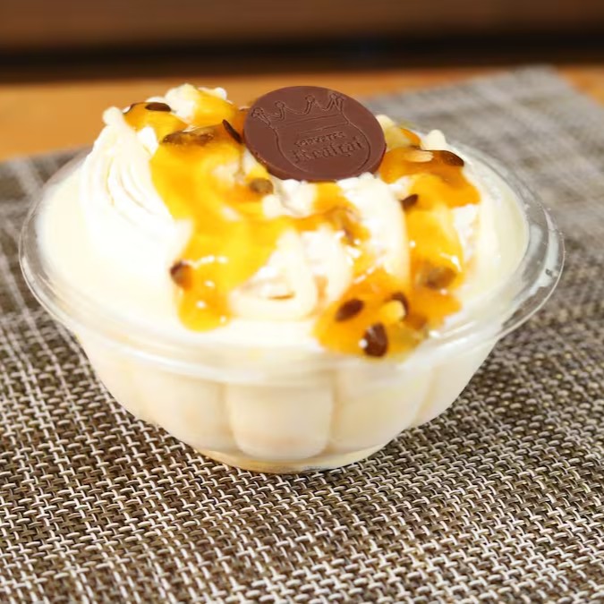 Feita a base de mousse especial de maracujá suave, geleia artesanal de maracujá + camada de sorvete especial Realçaí. Decorada com chantininho , brigadeiro branco e geleia artesanal de maracujá.